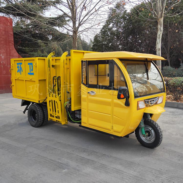 鑫業電動掛桶三輪垃圾車的箱體側壁上設置有翻桶組織;電動三輪垃圾車電池的裝置方位應盡可能地確保散熱好,發現過熱時應中止充電,需求對充電器和電動三輪廢物車電池查看。自裝卸式廢物車在箱體的后邊設有經上端的鉸接軸安裝于箱體上的箱門,與該箱門相裝備在箱體后端下部的兩邊別離設置有箱門鎖緊器;自裝卸式廢物車在箱體內的箱底上平行設置有一對滑道,其滑道上安裝有一裝備油缸的廢物充分推板。